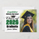 Customize your own green high school Class of 2026 graduate photo announcement card for a high school or college graduation. Cool varsity letters for the year on great custom cards for seniors. Classic typography next to your student photograph.