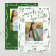Be proud, rejoice and showcase this milestone of your favorite grad! Send out this quirky, whimsical, simple, modern, personalized 4 photo collage announcement card for an event to remember. Fun, hunter green handwritten script typography and hand drawn graduation icon sketch doodles, along with your custom photo, overlay a white background. On the back, 3 additional photos, white hand drawn doodles and your personalized copy overlay a hunter green background. Personalize the custom text with your grad’s photo, name, school and class year on the front. Add 3 more photos of your choice, your personal note, next school she’s attending, etc. on the back. Matching invites, thank you cards, cap toppers, napkins, plates and other graduation goodies are also available in this trendy and stylish collection. Guaranteed to add stylish fun to their special occasion!