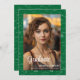 Elegant math graduation photo announcement with a green and white math formulas and equations patterned background. Illustrated and designed by Patricia Alvarez.