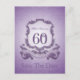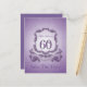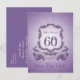 Desenho no estilo de brasão de armas em cores roxas com grande "60º + ANIVERSÁRIO" sobre uma faixa. Desenho em cartão postal vertical "Salve a Data" com nome (na frente) e texto para personalizar (no verso). Você pode facilmente alterar o texto (cor, fonte, tamanho e posição) clicando no botão personalizar. Disponível com desenhos para aniversário de 70, 80, 90, 95 anos. Convite de aniversário, livro de visitas de aniversário (caderno espiral), caixa de lembrancinhas, etiqueta de presente, artigos para festa (guardanapo de papel e prato de papel), almofada, caneca e outros presentes de aniversário para avós.
