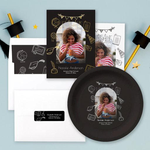 Anúncio Hand Drawn Chic Arch Photo Graduate Announcement