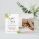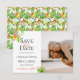 Ilha tropical com flores e folhagens em aquarela, cartão de Foto Casamento Save the Date. Personalize o estilo da fonte, cor e tamanho do texto.