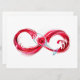Símbolo infinito do fluxo contínuo de vinho tinto que entra em vidro de vidro sobre fundo branco.