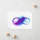Símbolo do infinito com uma bela pena pintada em cores roxas e azuis brilhantes sobre um fundo branco.