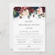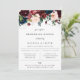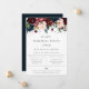 Arranjo floral em aquarela elegante em vermelho burgundy, rosa suave, azul marinho e verdes exuberantes, convite para jantar de ensaios. Design de tipografia chique e moderno. O verso do cartão apresenta cor azul marinho escuro sólido.