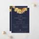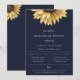 Convite de jantar de ensaios de girassol aquarelado rústico. Design de tipografia moderno e chique. O fundo apresenta uma cor azul-marinho escura sólida.