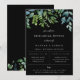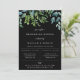 Arranjos modernos de verde botânico em aquarela em tons de verde e azul, convite para jantar de ensaio. Design de tipografia chic e moderno. O fundo apresenta cor preta clássica sólida.