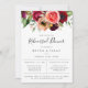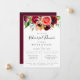 Folhagem e disposição floral em forma de água-coloração em tons de violeta, vermelho, rosa, pêssego e verde, convite para janto de ensaio. Design de fotografia e tipografia moderna. A parte traseira da carta apresenta cor bordéus robusta. Projetado para combinar com a nossa Coleção de Sangue Boêmia.