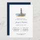 Convite para janto de ensaio para um farol de cor aquática elegante. Perfeito para o casamento náutico na praia.