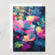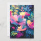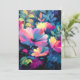 Um jardim arrojado, pairante, com flores florescentes em rosa, azul e roxo.