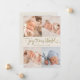 Cartão de nascimento do tema do Natal moderno, com um texto manuscrito que diz "alegria ao nosso mundo" com 4 fotos. Este é um cartão de anúncio de nascimento para as férias! Adicione suas fotos, estatísticas de natalidade e uma mensagem! O fundo é creme.