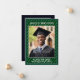 Este é um Anúncio de Graduação com faixa verde que mostrará seu formando. A frente terá uma fotografia do formando enquanto o verso tem uma imagem de um jogador de futebol. O texto principal é editável: Ano de Aulas de Nome O texto de volta também é editável: Ele fez! Informações sobre graduação.