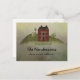 Projeto de casa primitiva em forma de caixa de sal em um cartão postal de anúncio que você pode personalizar com seu próprio nome ou outra mensagem de texto.