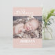 Este simples cartão de nascimento de colagem fotográfica moderno é perfeito para compartilhar as boas notícias da chegada do seu bebê. Ele apresenta uma foto de solteiro no lado frontal com um roteiro cardíaco moderno com a palavra "apresentando" sobre um fundo cor-de-rosa pincelado. As costas apresentam uma colagem de três fotos. Adicione o nome do seu bebê e as estatísticas de nascimento para personalizar o cartão.