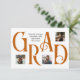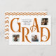 Este cartão de anúncio de graduação apresenta um design impressionante com a palavra "FORMANDO" em letras grandes e clássicas, criando um impacto visual ousado. Cada carta é cuidadosamente colocada para apresentar três fotos pessoais, permitindo que você exiba momentos prezados. A elegante tipografia contrasta lindamente com o fundo branco nítido, enquanto o texto personalizado acrescenta um toque refinado para celebrar o marco do formando. A parte traseira inclui um padrão zigzag colorido para corresponder à parte frontal. Perfeito por compartilhar com a família e amigos para marcar esta conquista orgulhosa! Disponível em cores escolares padrão de preto, vermelho, laranja, verde, azul, roxo, marrom e laranja queimado ou editado para corresponder às cores da sua escola.