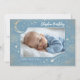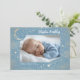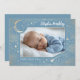 Bem-vindo ao seu recém-nascido é um momento único na vida, onde alegria, amor e maravilha se juntam em perfeita harmonia. Por que não torná-lo realmente mágico? Este encantador anúncio de nascimento azul empoeirado captura lindamente a alegria da chegada do seu bebê. Desde seu primeiro suspiro, ele merece ser celebrado com todo o amor e beleza que este novo capítulo traz. Adorada com uma lua de conto de fadas, uma estrela cadente de desejo, e constelações que brilham como a canção de ninar *Twinkle, Twinkle, Little Star*, esta carta enquadra a sua pequena foto como a parte central brilhante de uma marca de eterno. Sente-se verdadeiramente fora deste mundo, evocando sonhos e a magia de novos começos. A parte de trás do cartão oferece um design minimalista elegante, perfeito para sair como está ou personalizar ainda mais. Você pode adicionar uma colagem de momentos preciosos ou um sincero obrigado a registrar aqueles que o apoiaram durante sua jornada.