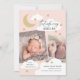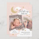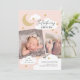 Um design de anúncio de nascimento divertido, mas elegante, que apresenta uma colagem de 2 fotos com roteiro de caligrafia na moda e estrelas desenhadas à mão, nuvens e lua crescente. Todas as cores são editáveis usando as ferramentas de edição.