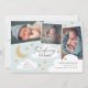 Um design de anúncio de nascimento divertido, mas elegante, que apresenta uma colagem de 3 fotos com roteiro de caligrafia na moda e estrelas desenhadas à mão, nuvens e lua crescente. Todas as cores são editáveis usando as ferramentas de edição.