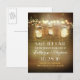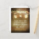 Cartão postal de salvação rústico com fundo de madeira e luzes penduradas em potes de pedreiro.