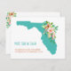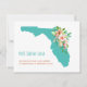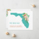 Um mapa tartaruga da Flórida é embelezado com uma bela cascata de flores tropicais rosa e corais hibiscus no nosso "Mais Sol! Sem neve!" mudança de endereço de placa simples. Todo o texto de exemplo na frente e atrás do anúncio em movimento pode ser facilmente revisado com sua própria saudação e detalhes de contato usando o modelo de personalização.