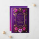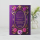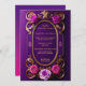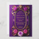 Este convite de casamento majestoso e roxo, desenhado de forma única, apresenta um design de quadro de ouro bonito, oval, com rosas roxas e cor-de-rosa grandes com um fundo de gradiente roxo. Este convite é para "uau" seus convidados para sua ocasião de excelente.