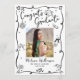 Orgulhe-se, alegre-se e mostre este marco do seu graduado favorito! Envie este cartão de anúncio de colagem de fotos personalizado, extravagante, caprichoso, simples e moderno para um evento inesquecível. Uma tipografia de escrita manual preta e divertida e rabiscos de esboços de ícones de graduação desenhados à mão, junto com a sua foto personalizada, sobrepõem um fundo branco minimalista. No verso, rabiscos desenhados à mão brancos e a sua cópia personalizada sobrepõem o preto. Personalize o texto personalizado com a foto do seu graduado, nome, escola e ano de turma na frente. Adicione a sua nota pessoal, a próxima escola que ela frequentará, informações da festa, etc. no verso. Convites, cartões de agradecimento, topos de gorro, guardanapos, pratos e outros itens de graduação combinando também estão disponíveis nesta coleção moderna e elegante. Garantido para adicionar diversão estilosa à sua ocasião especial!