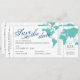 Cartões salve a data de passagem de embarque no mapa mundial para um tema ou casamento de destino com cores e estilo completamente editáveis. A COR DE MAPA E TUDO NO DESIGN é editável — usando este modelo para design de seu próprio cartão de embarque exclusivo, salve a data. Visite a coleção de designer do Custom Paper Works para coordenar itens.