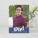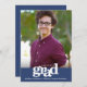 Tenha orgulho, alegria e mostre este marco do seu formando favorito! Envie este anúncio de fotos impressionante, simples, moderno e personalizado para um evento a ser lembrado. A tipografia branca e a banda azul-marinho ocultam uma fotografia da sua escolha. Personalize o texto personalizado com o nome do seu formando, ano escolar e ano de aula. No verso, sob o gráfico ousado de "parabéns", adicione sua nota pessoal, na próxima escola que eles frequentam - ou qualquer outra coisa que você queira compartilhar. Convites de encontro, cartas de agradecimento, bonés, guardanapos, pratos e outras vestimentas de graduação também estão disponíveis nesta coleção de tendências e na moda. Garantido para adicionar diversão na moda à sua ocasião especial! Basta substituir a foto por uma de suas, digitar o nome do seu formando, ano escolar e de aula, adicionar sua nota pessoal no verso, e você pode personalizar facilmente esse anúncio de graduação. Por favor, me mande mensagens com quaisquer perguntas ou solicitações.