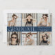 Anuncie sua formatura em estilo com este anúncio minimalista de graduação de colagem de 6 fotos. Com "Formando" em elegante cartaz branco moderno em um marinho ousado, este design personalizável permite adicionar seu nome, escola e ano de graduação para um toque pessoal. O verso do anúncio mostra um sofisticado padrão de linha diagonal de marinho e branco para um acabamento chic contemporâneo. Perfeito para formandos de segundo grau e de faculdade, este elegante design multifoto é uma maneira memorável de compartilhar sua conquista com a família e os amigos.