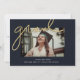 Comemore seu formando com este anúncio de graduação divertido e moderno em marinho escuro e ouro. Parte de uma coleção da Parcel Studios. **Os detalhes da folha de ouro são simulados no trabalho de arte. Não será utilizada nenhuma folha de alumínio real no fazer deste produto.