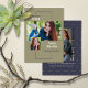 Estes anúncios de graduação de 5" x 7" apresentam um arranjo de fotos divertidas para uma de suas fotos favoritas duas na frente e uma na parte traseira com marcadores para seu nome, ano de graduação, escola, grau e área de foco.