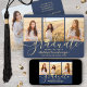 Compartilhe a alegria de um segundo grau ou formandos com anúncios personalizados de marinho de colagem de 4 fotos, azuis e dourados, descarregáveis. As imagens e todos os textos deste modelo digital são simples de personalizar com quaisquer detalhes de sua escolha, como informações sobre convites de festas, nomes de pais, honras especiais, título de grau, citação inspiracional favorita, informações de contato do formando ou planos para o futuro. (DICA DE IMAGEM: Uma maneira fácil de centralizar uma foto exatamente como você deseja é recortá-la antes de carregá-la no site do Zazzle.) O design apresenta a tipografia moderna, a caligrafia de script de tendências de chic com um boné de conselho de morteiro e quatro fotos de sua escolha, como fotos de mais velho ou imagens da cerimônia de início. Observe que o ouro é impresso a cor, não a folha metálica. Estes cartões de anúncio de na moda são uma maneira elegante de compartilhar uma celebração especial de dia com a família e os amigos. Parabéns ao formando!