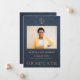 Marinho moderno elegante e escuro de couro azul e falso em ouro de cobre, modelo de cartão de licenciatura escolar com escala de justiça, sua foto e texto personalizados.