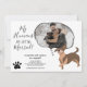 Engraçado, meus humanos vão se casar! Com uma camada de fotos em forma, um discurso de bolha com um cão de ilustração dachshund, adicione suas iniciais em preto e branco, anúncio moderno de noivado para donos de animais de estimação. Todas as cores são editáveis. Com patas bonitas e padrão ósseo na parte de trás.