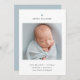 Boy birth announcement cards featuring modern minimalist blue heart design.