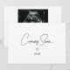 Minimalistic Modern Black & White Script "Coming Soon" Baby Pregnancy Announcement. Personalize with baby's year due on the front, and add an ultrasound photo, baby's last name, and specific due date on the back.