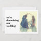Um cartão de anúncio de casamento minimalista moderno para informar aqueles em sua lista de convidados estendida original que as circunstâncias o obrigaram a reduzir o seu casamento. Na frente, "estamos reduzindo nosso casamento" é escrito em tipografia da moda ao lado de sua foto de noivado favorita. No verso, você pode personalizar sua mensagem em mais detalhes e adicionar qualquer transmissão ao vivo, celebrações futuras e informações do site do casamento.