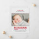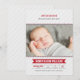 Anuncie o seu calouro do ano com este cartão de anúncio de nascimento de foto temática de beisebol exibindo um cabeçalho "Apresentando o Mais Novo Membro da Nossa Equipe" em letras esportivas vermelhas em negrito. O nome do bebê aparece em um banner vermelho com estatísticas de nascimento em uma grade estilo placar. Detalhe de costura de beisebol vermelha e listras diagonais cinza claro criam um visual clássico. Uma mensagem de texto "Bem-vindo com Amor" e todo o texto são totalmente personalizáveis.