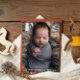 Anúncio de nascimento de foto com o início do seu bebê em uma grande fonte branca e negrito. Adicione nomes e estatísticas de natalidade. Anúncio de nascimento de tipografia moderna personalizado com uma grande foto. O anúncio moderno dos bebês personalizado com monograma e fotografia.