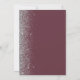 A borda esquerda deste elegante casamento moderno salve o cartão de data apresenta uma borda cintilante. O texto personalizável combina a escrita manual de cinzas prateadas, fontes em copperplate e itálico em um fundo de burlagem escura. O lado inverso apresenta uma burgundy e uma design prateada correspondentes.