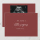 Modern Deep Red "Little Surprise" Pregnancy Announcement. Customize this minimalistic burgundy "we have a little surprise for you" pregnancy announcement card with baby's name, due date, and an ultrasound or other maternity photo to the back.