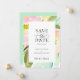 Floral de verão elegante e moderno, salve o anúncio do casamento. Flores de cor aquosa de artsy, cor-de-rosa-pincel e bellini de pêssego, com cobertura de cor neo-mint.