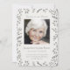 Um cartão de compaixão moderno com floral de cinza em fundo branco e lugar para uma foto.