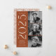 Anúncio de graduação de na moda com três fotos localizadas à direita do design em um layout vertical. "2023" é apresentado em caracteres brancos, modernos de arte, com um fundo castanho-ferrugem. Personalize o anúncio moderno da graduação de fotos, adicionando o nome do formando e o nome da escola. O design é invertido para exibir um plano de fundo geométrico marrom-ferrugem e branco. Perfeito para segundos graus e formandos!