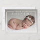 Compartilhe a sua alegria com este anúncio de nascimento de recém-nascidos moderno. O lado frontal apresenta uma grande foto com "bem-vindo ao nosso mundo" em branco nítido e o primeiro e médio nome do bebê em um texto branco moderno. O verso apresenta uma colagem de três fotos e todos os detalhes importantes, incluindo nome do bebê, data de nascimento, estatísticas de nascimento e nomes dos pais no tipo de cinza. Facilmente personalizado com suas próprias fotos e texto.
