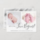 Avise aos amigos e à família que o seu pequenino chegou seguro e bem com estes bonitos cartões de anúncio de colagem fotográfica moderna. Apresentando 2 fotos quadradas da frente com a doce citação 'E assim a Diversão Começa!' e as estatísticas de nascimento do bebê. Pelo contrário, há outra fotografia e o texto "bem-vindos com amor e os nomes dos pais". Todos os textos e fotos são facilmente personalizados.