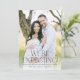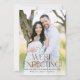 Anuncie sua notícia emocionante com este anúncio moderno sobre gravidez fotográfica apresentando sua foto vertical de sangria de cheio e uma cobertura de texto negro que diz "Estamos esperando!" Esta design neutra em termos de gênero é fácil de personalizar com a data de vencimento do seu bebê e os seus nomes na frente, criando uma forma elegante e na moda para partilhar a sua alegria. A parte de trás inclui espaço para outra foto e sua mensagem personalizada, fazer-a a escolha perfeita para uma carta reveladora única e sincera de gravidez.