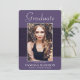Belo 1 foto 5"x7", cartões de anúncio de graduação. Apresentando texto moderno com um roteiro elegante. A foto dos formandos é finamente bordada em uma borda branca e um caimento decorativo ondulado. A design é complementada com um fundo em tons de roxo e violeta. A parte traseira do cartão oferece um espaço de texto de anúncio personalizado para esse formando especial. Para ver mais itens como este, visite minha loja aqui em "www.Zazzle.com/LakeViewCardCo". Obrigados