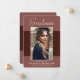 Belo 1 foto 5"x7", cartões de anúncio de graduação. Apresentando texto moderno com um roteiro elegante. A foto dos formandos é finamente bordada em uma borda branca e um caimento decorativo ondulado. A design é elogiada com um fundo em tons de terracota. A parte traseira do cartão oferece um espaço de texto de anúncio personalizado para esse formando especial. Para ver mais itens como este, visite minha loja aqui em "www.Zazzle.com/LakeViewCardCo". Obrigados