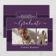 Lindos 2 fotos 7"x5", cartões de anúncio de graduação. Apresentando texto moderno com um roteiro elegante de caligrafia. Suas fotos estão finamente revestidas com um molde branco para aquele "Pop" extra. O design é complementado com fundo real em tons de terra de roxo. A parte traseira do cartão oferece um espaço de texto de anúncio personalizado para esse formando especial. Para ver mais itens como este, visite minha loja aqui em "www.Zazzle.com/LakeViewCardCo". Obrigados